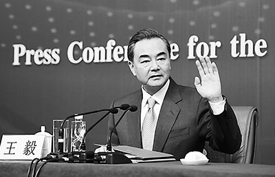 外交部部长王毅表示,将让世界人民更好地理解中国坚持走和平发展道路的决心。本报记者 李志伟摄