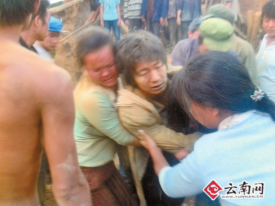 一名伤员被从废墟中救出(手机照片) 巧家县委宣传部 供