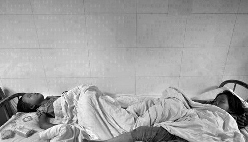 今日凌晨3点,待在鲁甸县第一人民医院的罗发明仍然没有入睡,身边的三个孩子刚刚输完液,已经躺在走廊上睡着了。他在等待妻子和伤势严重的那个孩子的消息,但是由于电话丢了,他还没有联系上妻子。