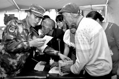 4日下午1点,云南省公安边防总队医院战士谢樵在鲁甸“8.03”地震救援中营救受灾群众时,不幸被山上滚落的坠石击中,随即卷入堰塞湖激流中,他用年轻的生命谱写了一曲抗震救灾生命壮歌。