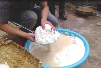 救援人员将煮好的浑水舀出。图/腾讯网