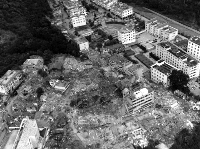 这是昨天航拍的震中鲁甸县龙头山镇,目前各项抗震救灾工作正在全力开展中。新华社发