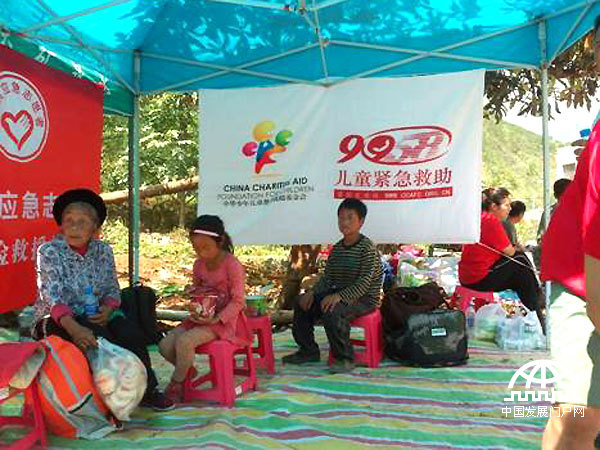 8月5日,中华儿慈会第一批救灾分队顺利抵达龙头山镇骡马口,和当地志愿组织,共同搭建起灾区一线赈灾大本营,救助灾民。
