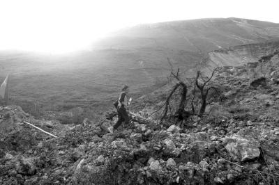张国芬回到了甘家寨子,她站在埋着25名亲人的废墟上哭泣不已。