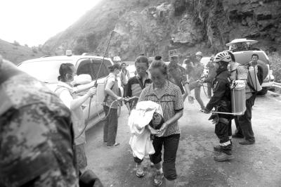 昨天中午12点多,气温达到了33摄氏度,骄阳似火,在外面站上一会儿就皮肤生疼。鲁甸县龙头山镇龙泉中学附近的医疗救护点帐篷病房内,年已80岁的老妪汪明珍正输着液,老人的女儿张国芬在一旁照顾,母女两人相对无语,张国芬不时擦拭着泪水。