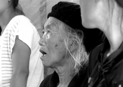 汪明珍老人家住龙泉村甘家寨子居住点,在这场地震中,老人的大儿子张国礼全家7口被埋在废墟下,至今生死不明。更让老人和张国芬无法接受的是,他们在甘家寨子的其他18名近亲属也在地震中被埋,目前同样杳无音讯。“瞒了几天还是没瞒住,听说我大哥一家还没出来,老太太从6号上午开始就不吃不喝”,张国芬说。距地震发生已过了80多个小时,甘家寨子也已经有大量救援人员进入搜救,但张家的25人依然下落不明。
