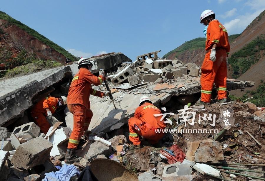 甘家寨现场正在开展的大规模搜救工作。