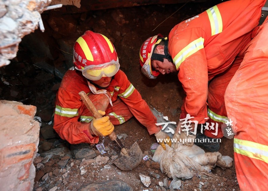 搜到甘家寨被掩埋的村民家二楼的被褥 云南日报记者 禹江宁 摄