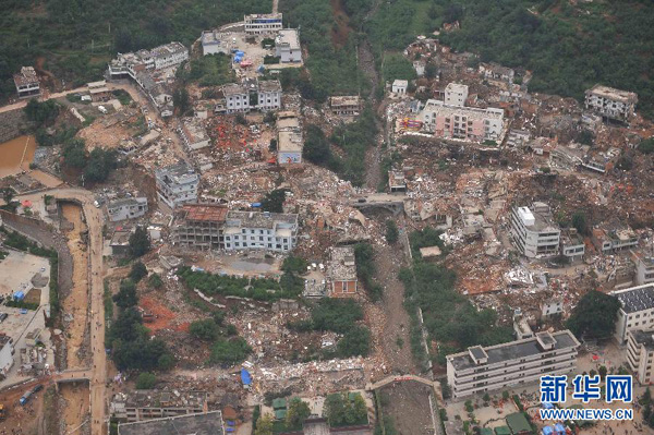 这是8月4日航拍的震中鲁甸县龙头山镇。 新华社记者薛玉斌摄