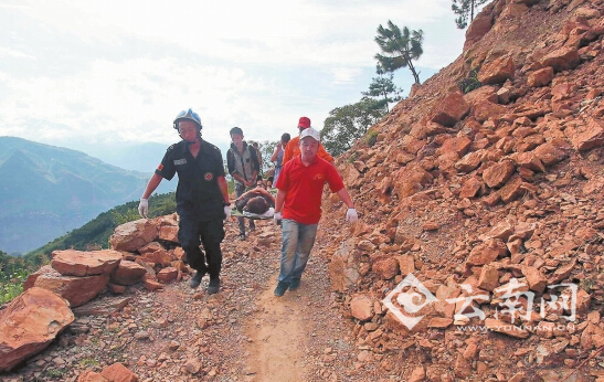 黄兴能迅速联系了相关机构,确定鲁甸县人民医院收诊,17时30分,大家七手八脚地抬着李兴秀下山。