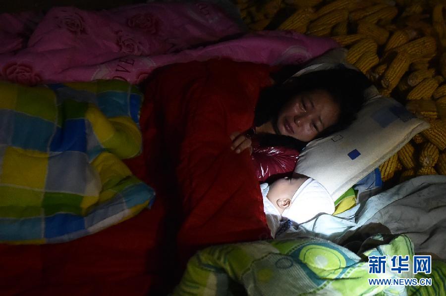 10月8日,景谷县永平镇傣族村民刀艳玲与3个月的儿子在露天过夜。