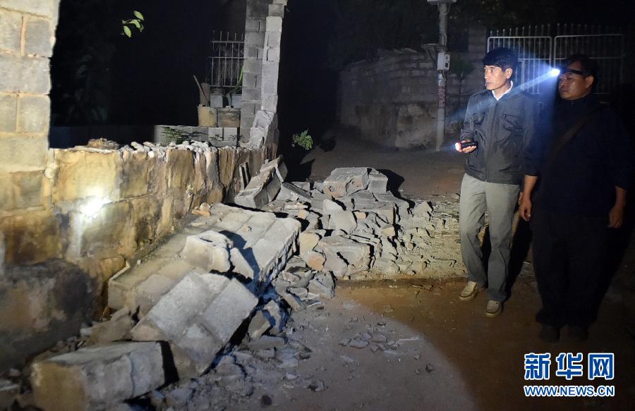 10月8日,重灾区景谷县永平镇芒腊村傣族村民在查看受损房屋。