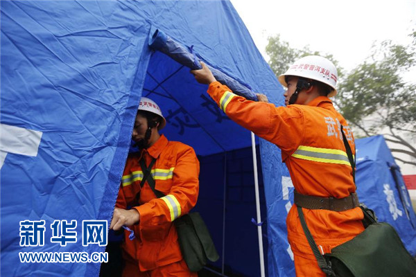 14集团军某旅451名官兵从临沧紧急出动,某工兵团地震紧急救援队200余名官兵携带救援设备从大理驻训地域赶往灾区。10月8日1时许,该集团军先头部队300名官兵到达震中永平镇后,立即兵分三路进村入户查看灾情,开展救援安置工作。