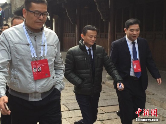 11月19日,阿里巴巴集团创始人马云现身乌镇,参加首届世界互联网大会。据大会官方提供的议程显示,马云将出席跨境电子商务和全球经济一体化论坛。而国内互联网三巨头马化腾、马云、李彦宏还将在“中外互联网领袖高峰对话”环节共同出席。这是中国举办的规模最大、层次最高的互联网大会,也是世界互联网领域的高峰会议。 王晓婕 摄