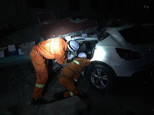 11月22日,消防官兵在康定县塔公乡甲巴村搜救。当日22时许,四川甘孜消防支队第一批救援力量抵达震中附近区域康定县塔公乡甲巴村,随即开展救援。中国地震台网测定:11月22日16时55分在四川省甘孜藏族自治州康定县(北纬30.3度,东经101.7度)发生6.3级地震,震源深度18千米。新华社发(黎祯 摄)