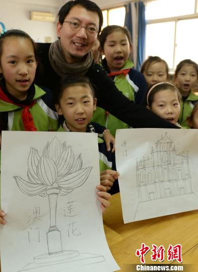 迎澳门回归祖国15周年 河北小学生绘“澳门莲花”(组图)