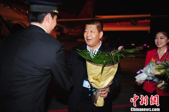 12月31日晚,深圳航空公司总裁陈志勇、党委书记刘军等高管来到宝安国际机场停机坪迎接飞翔归来的ZH9908次航班旅客和机组人员,送上新年礼物和诚挚的祝福。陈文 摄