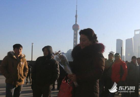 2015年1月1日,外滩陈毅广场,已有上海市民陆续自发前来为在踩踏事件中的死伤者献花祈福。据报道,2014年12月31日晚23时35分许,上海市黄浦区外滩陈毅广场发生群众拥挤踩踏事故,致35人死亡,48人受伤。事故发生后,上海市连夜成立工作组。韩正、杨雄要求全力做好伤员抢救和善后处置等工作。事故原因正在调查中。图片来源:东方网