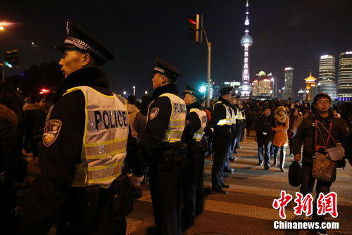 2015年1月1日晚,上海警方加强外滩安保工作,“筑人墙”为行人保驾护航。2014年12月31日晚23时35分许,上海外滩陈毅广场发生拥挤踩踏事故,截止目前,致36人死亡,47人受伤。