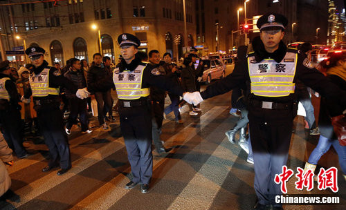 上海警方“筑人墙”为行人保驾护航(图)