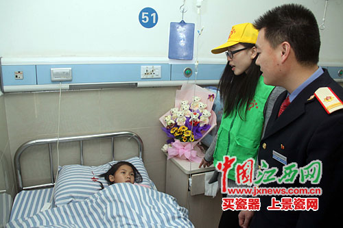 2月11日,宜春车务段工作人员和志愿者来到病房看望四川女孩董媛媛。