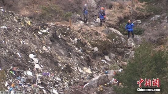 当地时间2015年3月24日,法国Seyne Les Alpes,德国之翼一架A320客机坠毁,飞机残骸散落在山上,飞机已完全解体。