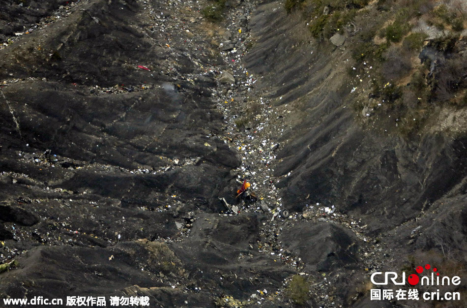 当地时间2015年3月24日,法国Seyne Les Alpes,德国之翼一架A320客机坠毁,飞机残骸散落在山上,飞机已完全解体,现场无人生还迹象。 图片来源:Thomas KoehlerPhotothekNet/东方IC