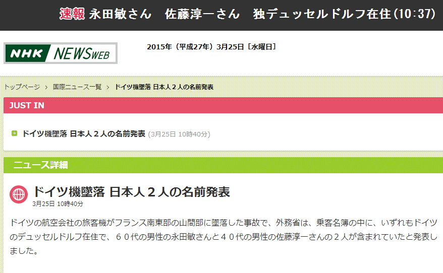 | 德客机在法国坠毁 日本公布该国两遇难者信息 2015-03-25 |