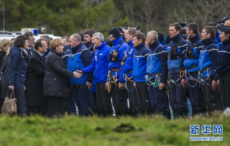 当日,法国总统奥朗德、德国总理默克尔和西班牙首相拉霍伊抵达法国东南部上普罗旺斯阿尔卑斯省的塞讷镇。塞讷镇靠近空客A320飞机的坠毁地,目前救援队伍和媒体都聚集在这里。法德西三国领导人与参与救援的法国宪兵和消防队员进行了交流。随后,他们听取了法国地方政府官员关于救援行动的汇报。新华社记者陈晓伟摄