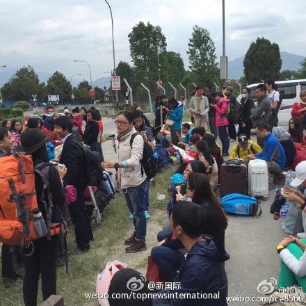 目前在尼泊尔加德满都机场的中国游客谢斌告诉@新国际 ,他所在旅行团的大约200人正滞留在机场,没有伤亡。机场保安通知今天所有航班暂时取消。目前机场内唯一一个卖水和食物的店被疯抢,机场网络信号极差。他说,在前往机场的路上他看见多地在地震中损毁严重。