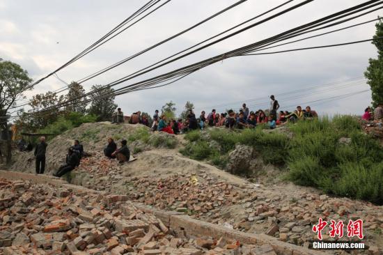 据中国地震台网正式测定:4月25日14时11分在尼泊尔(北纬28.2度,东经84.7度)发生8.1级地震,震源深度20千米。尼泊尔首都加德满都震感强烈。记者目睹一堵墙被震塌,周围大批居民奔跑到空旷地带,狗叫声四起,手机信号中断。图为加德满都部分房屋倒塌。中新社发 符永康 摄