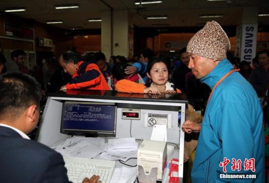 图为3月7日夜间,滞留中国游客办理登机手续。中新社发 符永康 摄