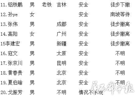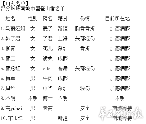 昨天下午,华西都市报记者从珠峰南坡受伤队员处得到一份,他们整理出来的中国登山队部分队员现况的名单。