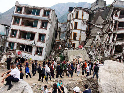 ↑2015年4月25日在尼泊尔加德满都杜巴广场拍摄的遭到地震破坏的建筑。