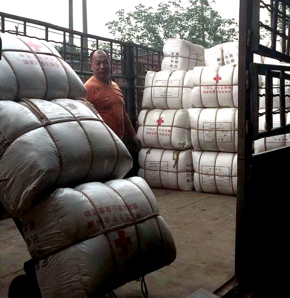 中国红十字会成都备灾救灾中心在装运发往西藏红十字会救灾物资 秦小利 摄影