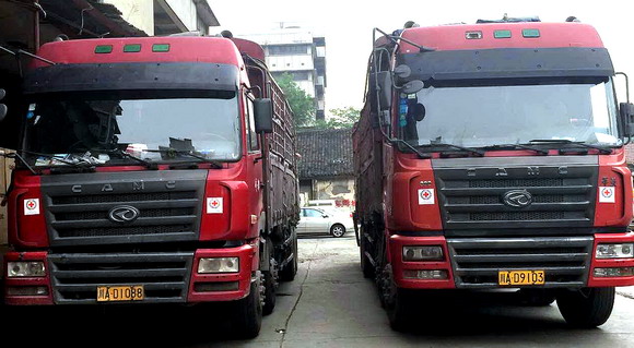 中国红十字会成都备灾救灾中心装满外发往西藏红十字会救灾物资汽车准备出发 秦小利 摄影