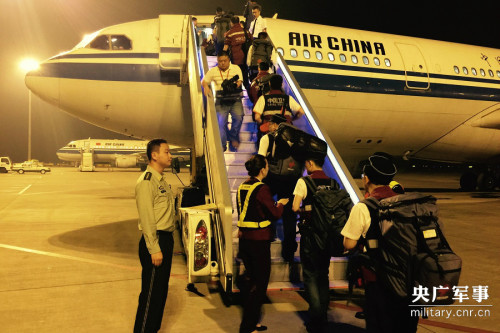 4月27日凌晨4点,首架载有58名医护人员和15吨医疗物资的中国政府救援包机,从成都双流国际机场起飞前往尼泊尔加德满都开展救援。担负边防检查任务的四川公安边防总队成都边防检查站官兵仅用22分钟,就完成了包机全部出境边检手续,确保医护人员和救援物资能第一时间运抵尼泊尔地震灾区。