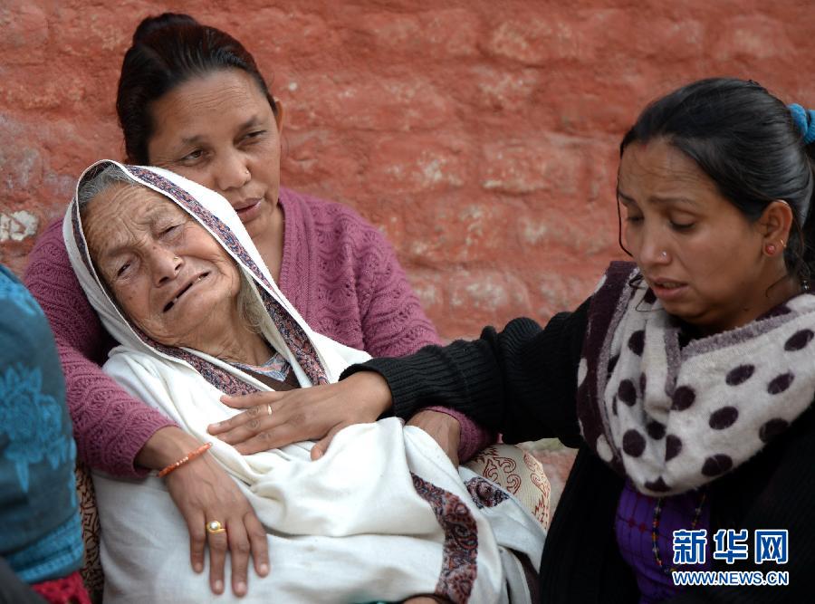 4月29日,在尼泊尔首都加德满都,亲属在地震遇难者的火葬仪式上痛哭。尼泊尔4月25日发生的强烈地震已导致5000余人死亡,目前死亡人数仍在上升。 新华社记者秦晴摄