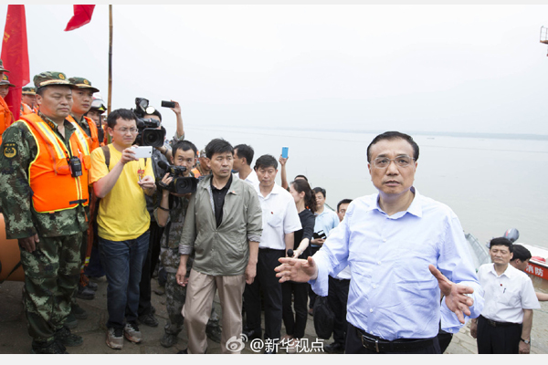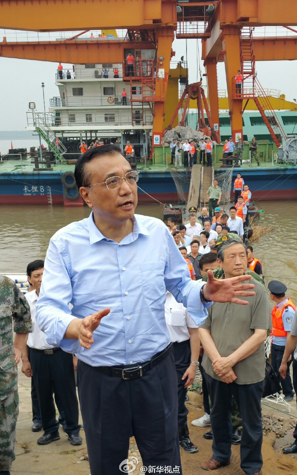 新华社北京6月2日电 据新华社“新华视点”微博报道,李克强从指挥船上走到岸边,对在场的救援人员说,要根据刚才的成功经验,抓紧时间搜救乘客,这是当前第一要务,后续还有大量工作,你们肩负重担,希望继续发扬人民利益高于一切的精神,尽最大努力,把救人等各项工作做好!
