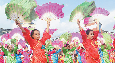 7月31日,张家口崇礼县居民聚集在广场上庆祝申冬奥成功。 本报记者 杨柳摄