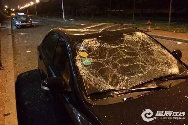 (8月13日凌晨,记者赶到离事故现场数公里的位置,停在路边车辆受到爆炸冲击破损。 长沙晚报星辰在线特派记者石祯专、陈焕明摄影报道)