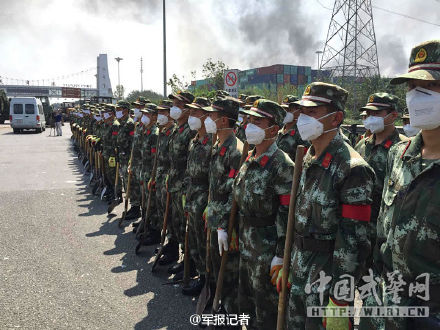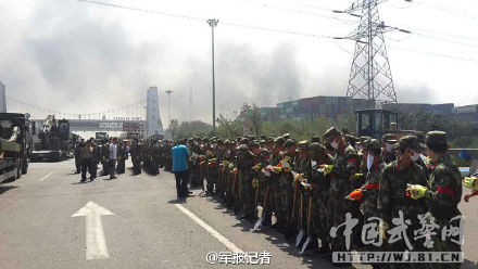 武警一线救援官兵到达天津爆炸现场 展开救援(组图)
