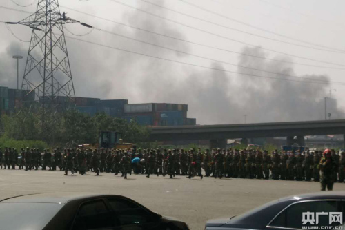 天津爆炸事故:现场仍有浓烟 大量武警官兵待命(组图)