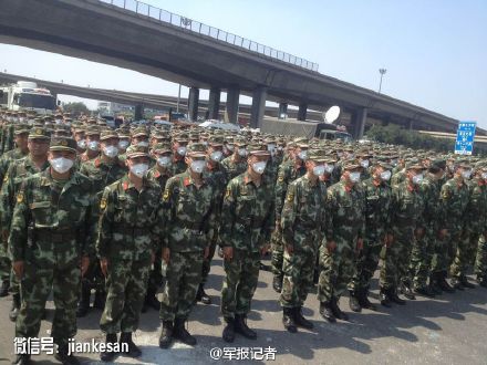 武警官兵在天津爆炸事故现场未检测到氰化物