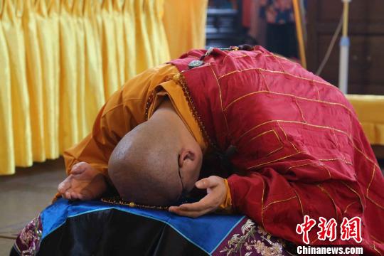 图为灵隐寺方丈光泉大和尚在佛前祈愿。 云林一叶 摄