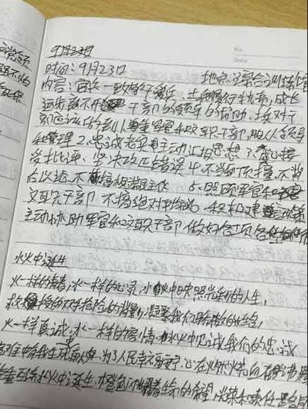 天津滨海爆炸事故中牺牲消防员的笔记本。