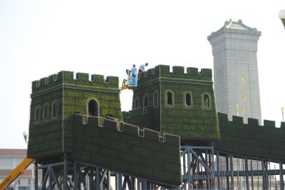 纪念抗战胜利70周年 天安门广场搭山水花坛延至国庆后(组图)