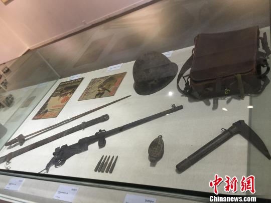 日军遗留在中国战场的步枪、手雷、骑兵镰刀等日本侵华铁证。 傅煜 摄