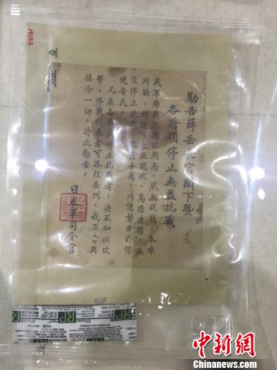 长沙会战期间日军写给中方军队的“劝降书”。 傅煜 摄