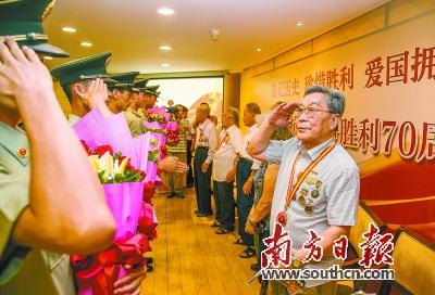 18日,广东省爱国拥军促进会在广州召开“铭记历史,珍惜胜利,爱国拥军”纪念中国人民抗日战争胜利70周年座谈会,6位年龄都在80岁以上的抗战老前辈参加了座谈会。
